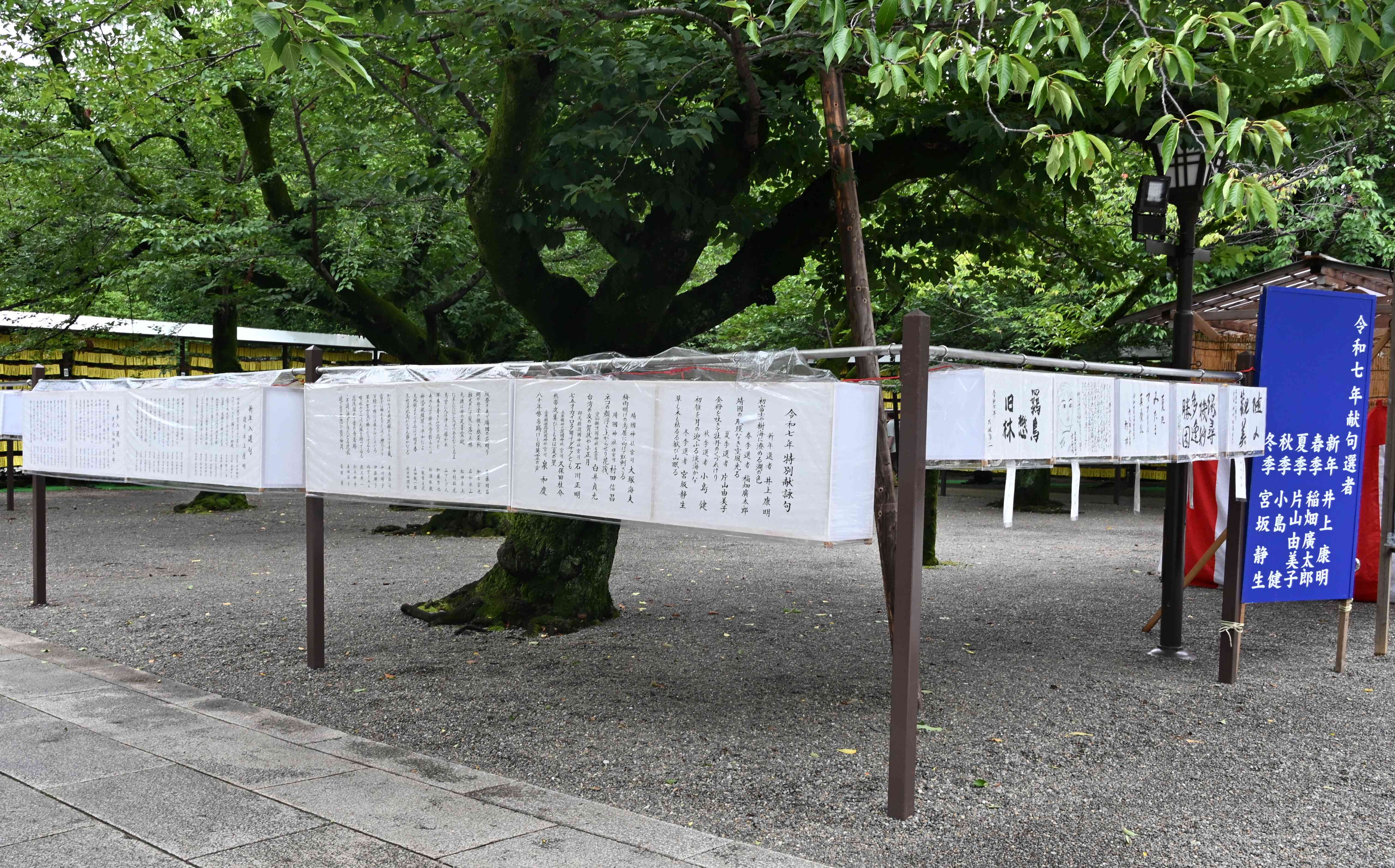 応募戴いた献詠の中から、預選歌は6月29日の御創立記念日に古式によって披講申し上げ、預選句は7月13日からのみたままつりに披露申し上げます。