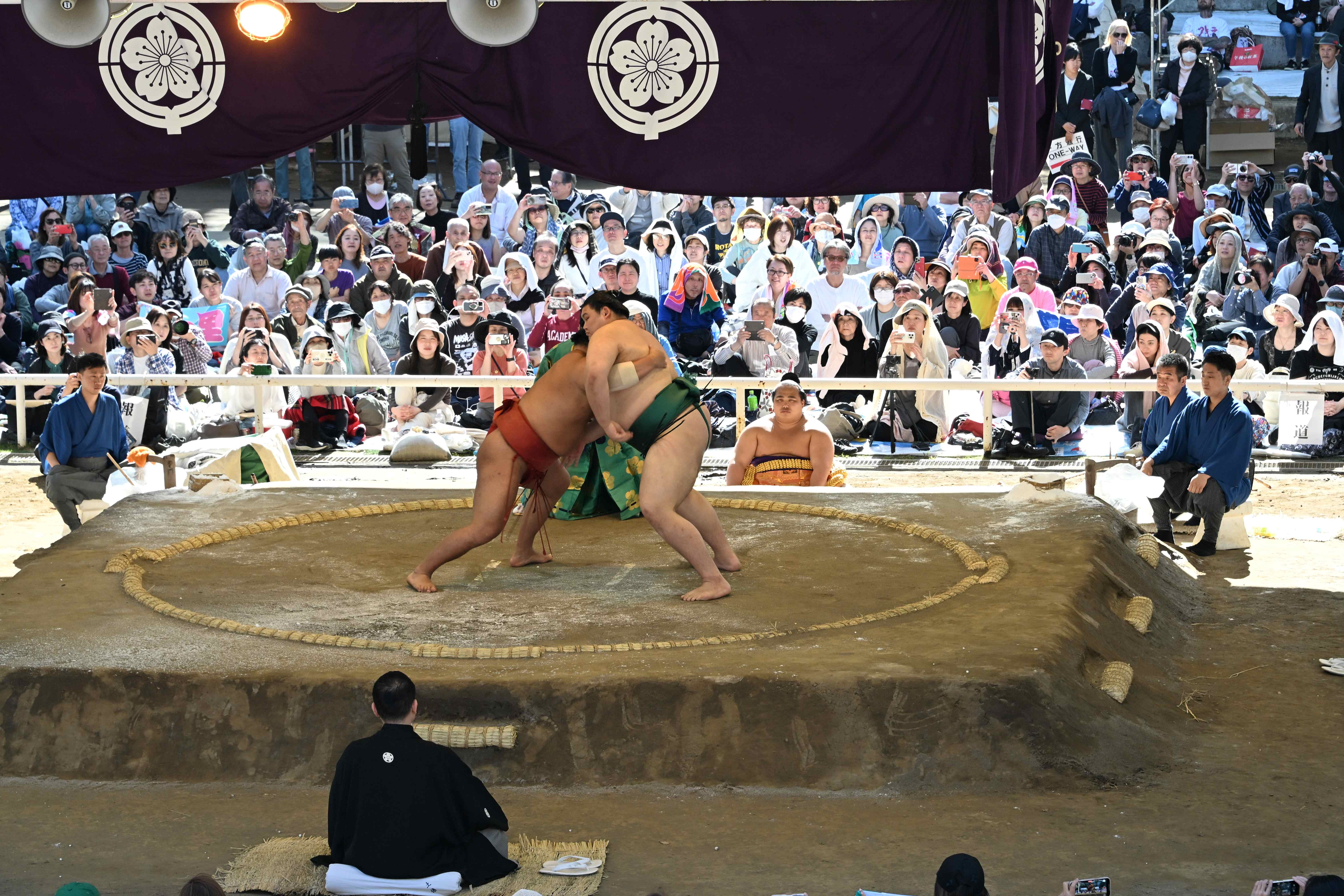 取組のほか、本場所では見られない初切り・相撲甚句・櫓太鼓打ち分けなども奉納されます。